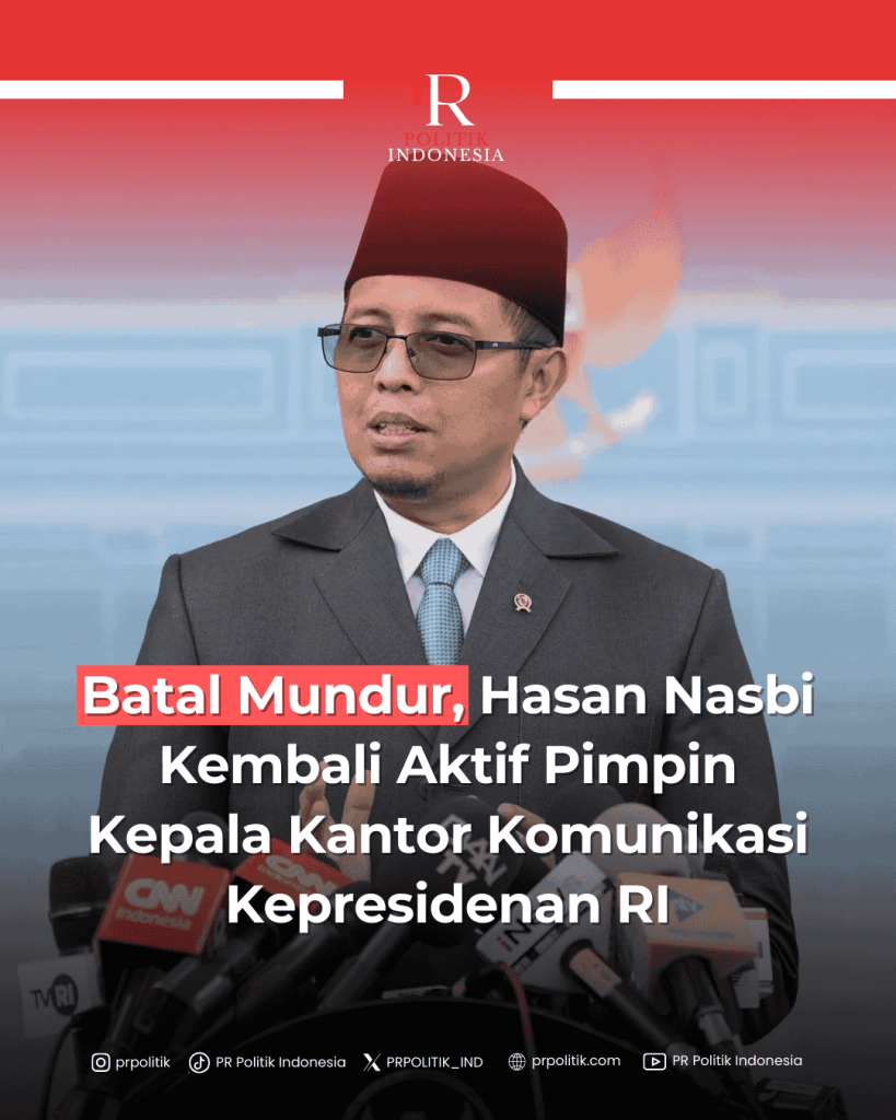 Jakarta, PR Politik — Hasan Nasbi menyatakan kembali aktif meski sempat mengumumkan pengunduran diri sebagai Kepala Kantor Komunikasi Kepresidenan (PCO) per 21 April 2025. Ia mengatakan, mulai kembali ke kantor PCO pada Selasa (6/5/2025). Ia juga hadir dalam Sidang Kabinet Paripurna di Istana Negara pada Senin (5/5/2025), karena mendapat undangan resmi. “Sejauh ini saya diperintahkan untuk […]