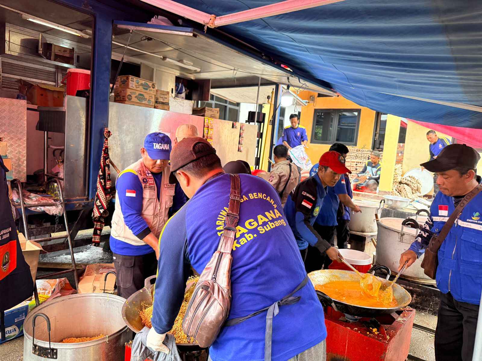 Di lapangan, petugas Kemensos bersama Taruna Siaga Bencana (Tagana) telah mendirikan dapur umum yang berpusat di Kantor Kecamatan Pamanukan. Fasilitas ini didukung oleh personel Tagana dari Kabupaten Subang dan Garut guna memproduksi makanan bagi ribuan pengungsi.