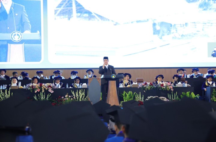 “Kalau pangan, energi, dan air kita mandiri, tidak ada negara yang berani mengganggu Indonesia. Karena tiga hal ini adalah krisis global, dan solusinya ada di Indonesia,” ujarnya di hadapan ribuan wisudawan.