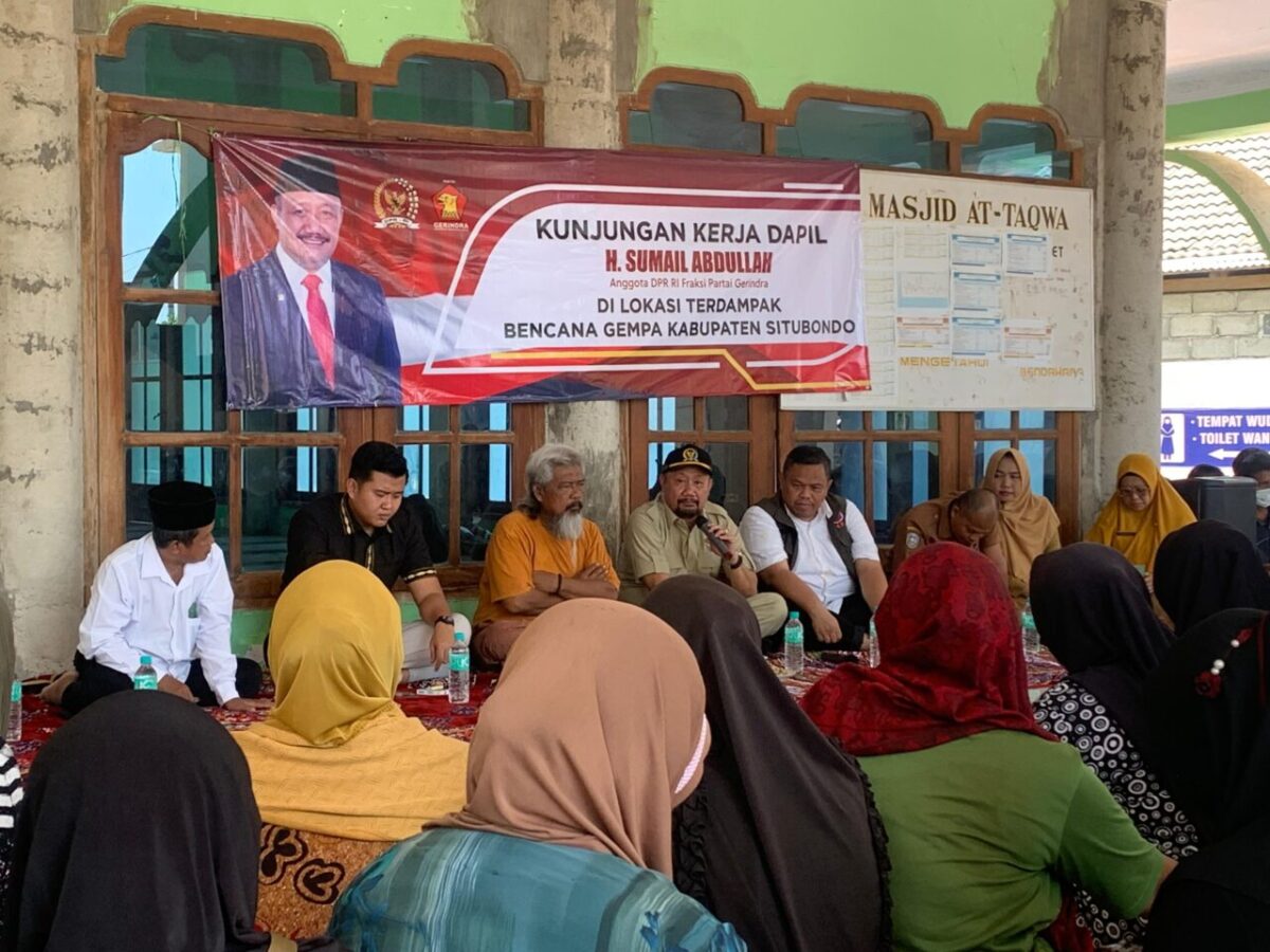 Situbondo, PR Politik – Anggota DPR RI Fraksi Partai Gerindra, H. Sumail Abdullah, melakukan kunjungan kerja ke wilayah terdampak gempa bumi di Kecamatan Banyuputih, Kabupaten Situbondo, Senin (6/10/2025). Dalam kunjungan tersebut, ia didampingi Anggota DPRD Situbondo dari Partai Gerindra, Andrian Oktadiansyah, S.E., serta sejumlah pejabat daerah dan perwakilan lembaga terkait.