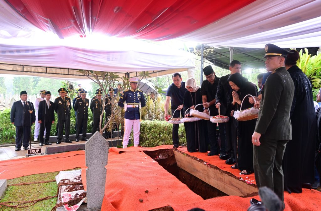 “Saya Presiden Republik Indonesia atas nama negara bangsa dan Tentara Nasional Indonesia dengan ini mempersembahkan ke persada Ibu Pertiwi jiwa raga dan jasa-jasa almarhum,” ucapnya di depan liang lahad.