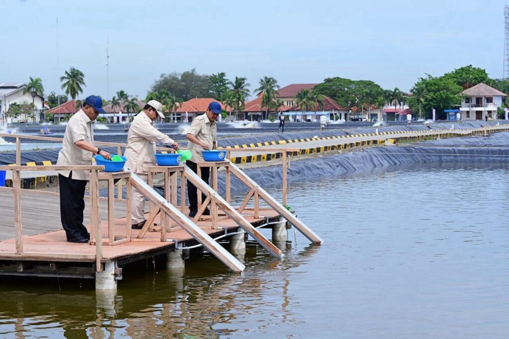 Presiden Prabowo juga meninjau area pendederan benih ikan nila salin, yang merupakan tahap awal siklus budidaya. Dalam kunjungannya, Presiden menyempatkan diri menyapa warga dan pembudidaya ikan yang berada di sekitar kawasan tambak, mendengarkan aspirasi mereka secara langsung.